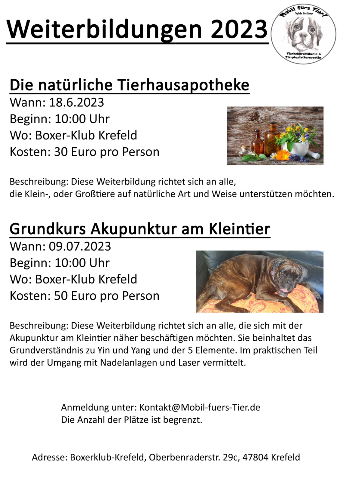 9. Februar 2023 0 Kommentare 20:46Ich gebe auch als Freie Dozentin für Naturheilkunde verschiedene Seminare. 1. Hilfe 1 – Tages Kurs – Hund Die natürliche[...]